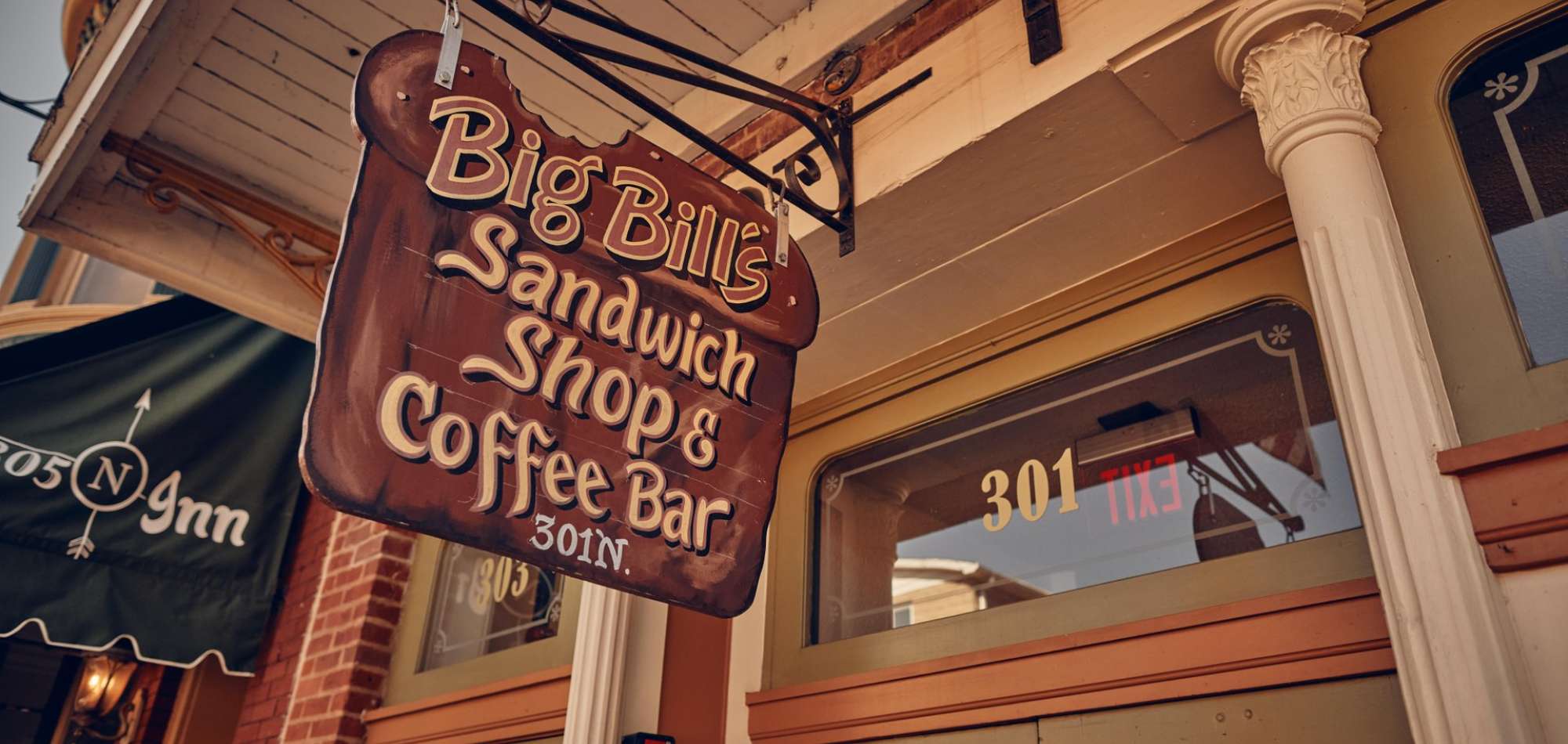 Big Bill’s Sandwich & Coffee Bar is a cozy downtown Galena café serving made-to-order sandwiches, breakfast favorites, soups, and great coffee. With friendly service and a relaxed atmosphere, it’s a favorite stop for locals and visitors alike.