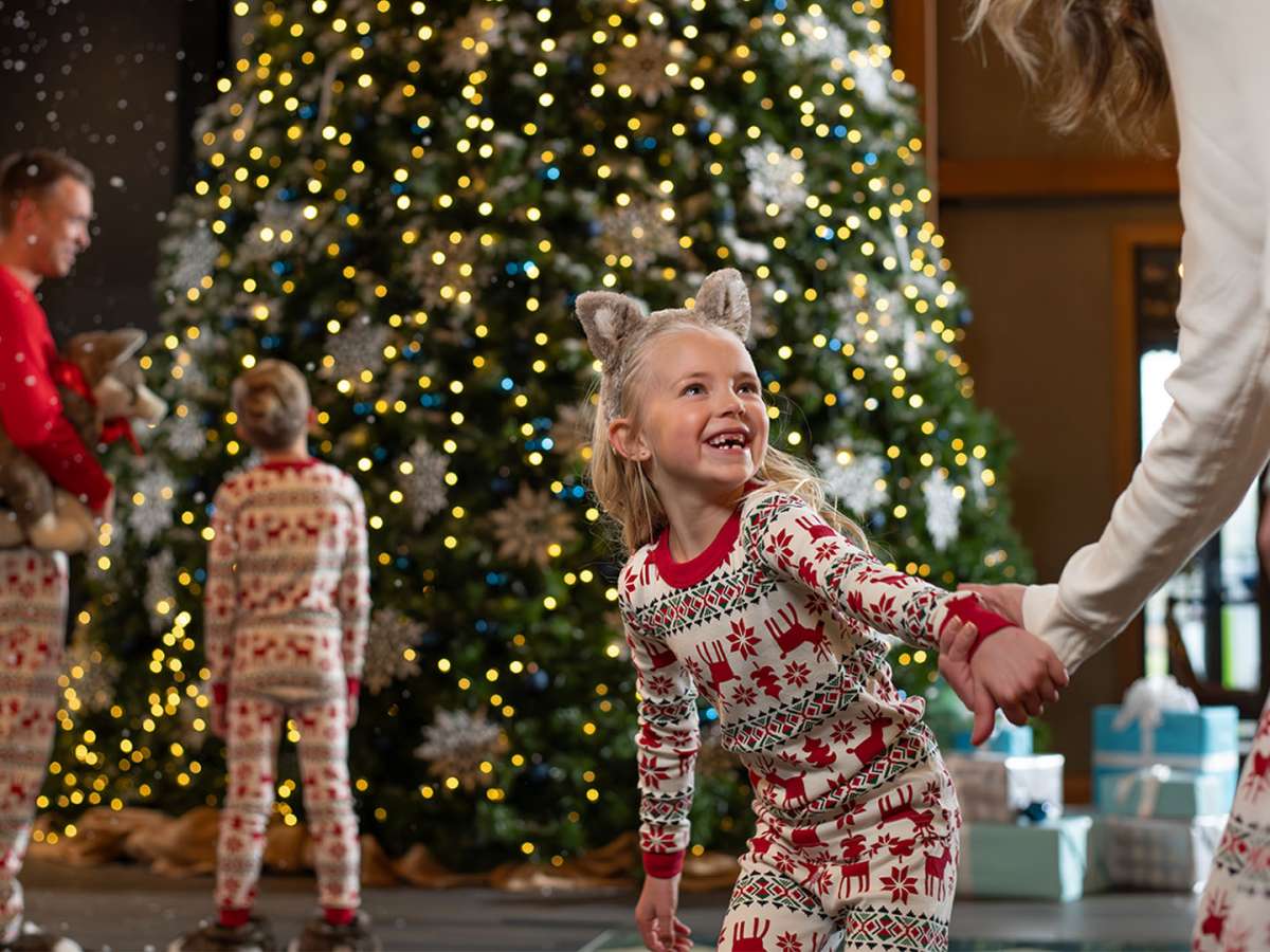 Families will gather to ring jingle bells, sing seasonal melodies, and participate in dance numbers to conjure a magical snow flurry inside the lobby.