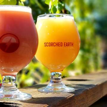 Mike et Jen comparent le nom "Scorched Earth" (terre brûlée) aux incendies de forêt qui détruisaient souvent des prairies entières dans les années précédant la colonisation de l'Illinois. À la place de l'herbe brûlée, de nouvelles pousses apparaissaient, donnant lieu à un écosystème plus diversifié qu'auparavant. Ce nouveau départ évoque directement le style "toile blanche" qui définit le portefeuille créatif de bières de Scorched Earth, qui portent toutes des noms tels que Twisted Hickster et Rugged Coalminer.