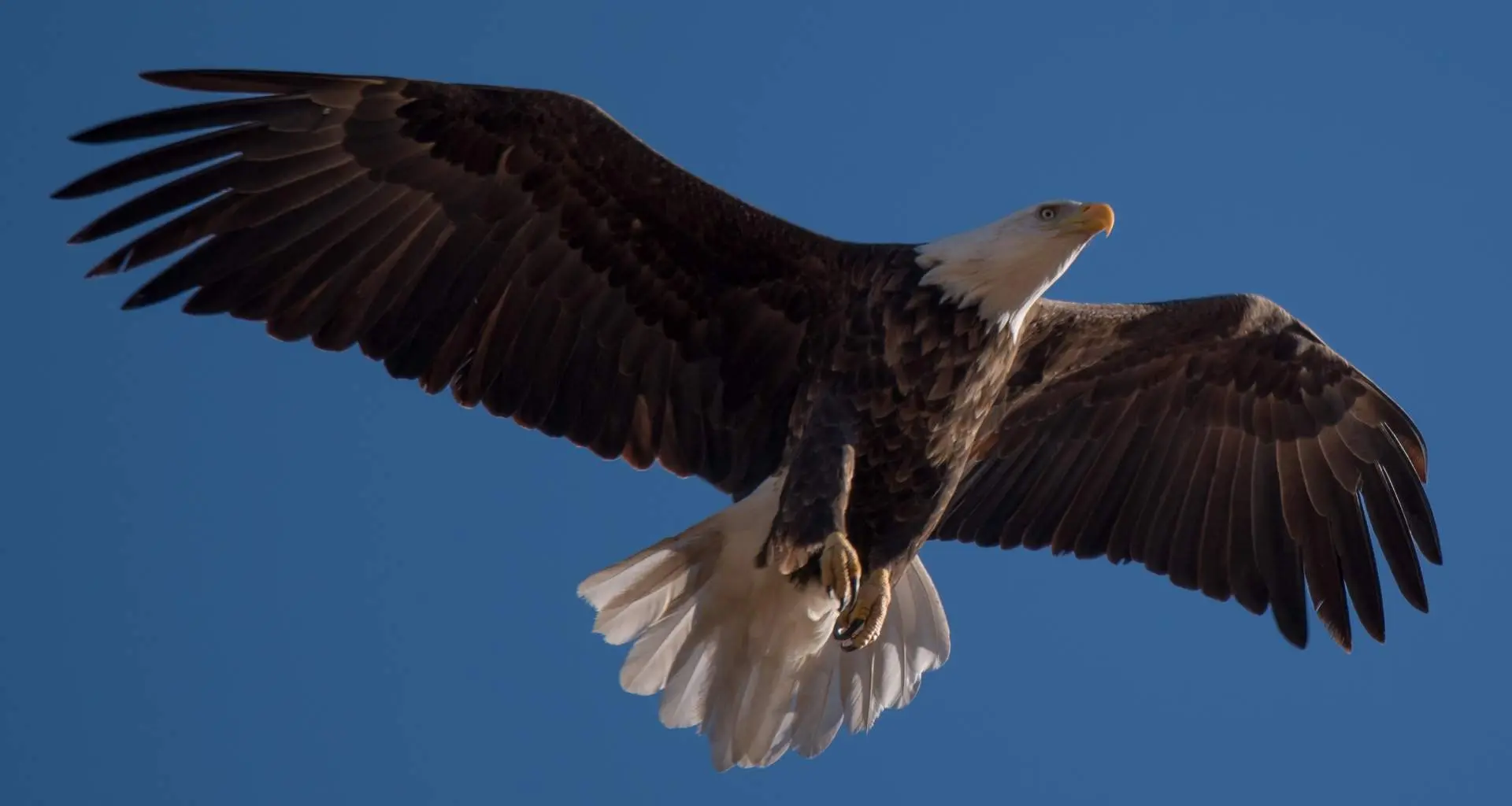 Les pygargues à tête blanche affluent sur les rivières de l'Illinois de décembre à mars, avec un pic d'observation en janvier et février. Les rivières Mississippi et Illinois attirent le plus grand nombre de pygargues, en particulier près des écluses et des barrages où les eaux ne sont pas gelées. Quel est le meilleur moment de la journée pour observer des aigles dans l'Illinois ? L'aube, où vous avez des chances d'apercevoir des dizaines d'aigles en train de plonger à la recherche de poissons à déguster au petit-déjeuner. La fin de l'après-midi, avant le coucher du soleil, est également une bonne option.