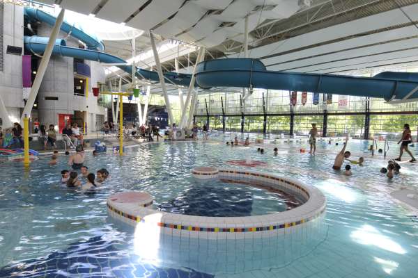 This indoor complex offers play, lap & therapy pools plus swimming lessons & a family changing room.