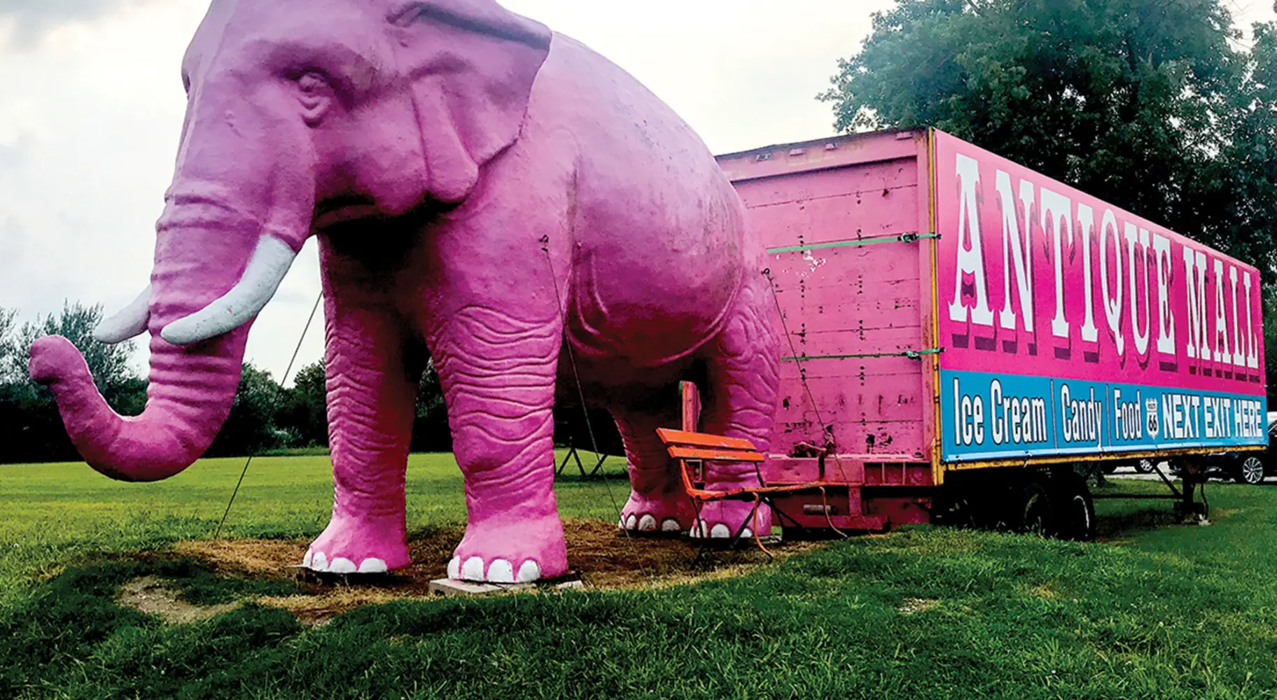 Le Pink Elephant Antique Mall est une étape excentrique et incontournable de la Route 66 à Livingston, dans l'Illinois. Installé dans un ancien lycée, ce trésor tentaculaire compte plus de 50 vendeurs qui proposent tout, des meubles vintage aux objets de collection, en passant par les trouvailles rares et les souvenirs nostalgiques. À l'extérieur, des statues surdimensionnées, dont l'emblématique éléphant rose, donnent un ton enjoué, tandis que le restaurant et la confiserie rétro du site permettent de passer un après-midi à explorer les lieux. C'est à la fois une attraction routière et un paradis pour les chasseurs d'antiquités, et c'est tout à fait charmant.